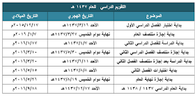 التقويم الدراسي الجديد لعام 1437 1438 بالسعودية والاجازات الرسمية 2016 2017
