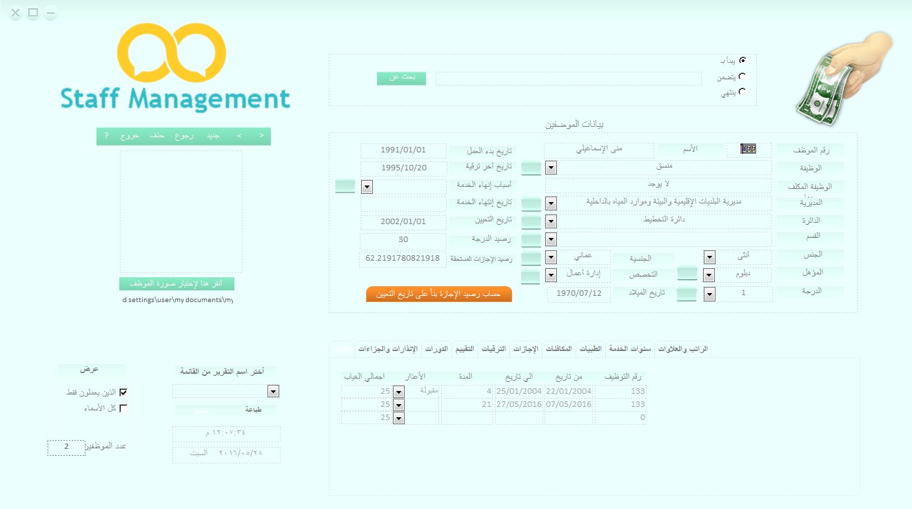 برنامج شؤون الموظفين وحساب الرواتب والاجازات Personnel Program And Calculate Salaries Vacations